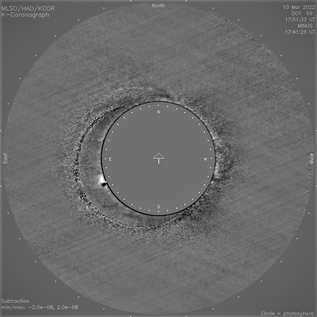 STEREO COR2 observations of the March 10, 2022 CME. Note the very flattened top of the CME, indicative of the presence of a shock wave.