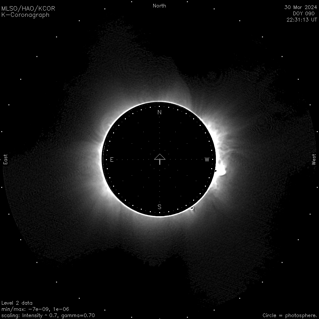 These are the first observations from MLSO since Nov 25, 2022. MLSO erupted a few days later and destroyed a significant part of the upper MLSO access road and power lines. Currently the only way to reach the site is by helicopter. Observers and a generator were flown to the site to observe for the Parker Solar Probe perihelion #19. The current schedule for the new road completion is April 2025 – after which MLSO will reopen for nominal observations.