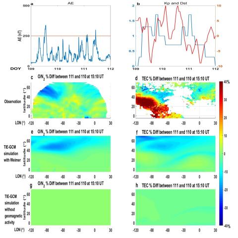 We conducted observational and modeling studies of thermospheric composition and ionospheric total electron content (TEC) variations during two geomagnetically quiet periods (maximum Kp=1.7) at solar minimum.